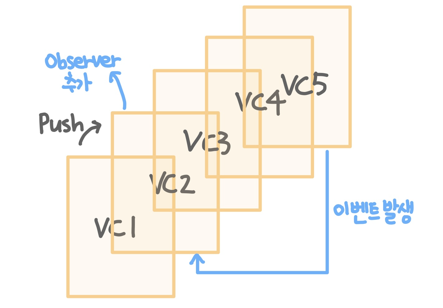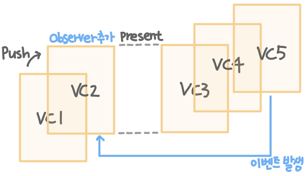 결국 서로 다른 navigation controller라면 서로 독립적으로 생각할 수 있고, 옵저버를 통해 이전 뷰에 접근해 뷰를 쌓을 수 있다.