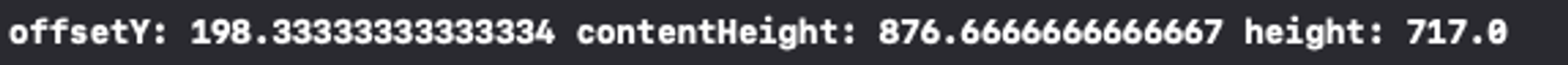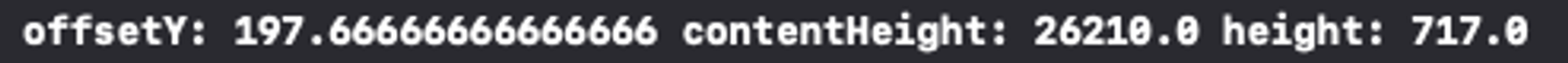 내가 스크롤 한 offsetY는 198.xx, 데이터가 그려진 contents의 높이는 876.xx, 그리고 화면의 높이(화면에 보이는 컬렉션뷰의 높이)는 717이다.